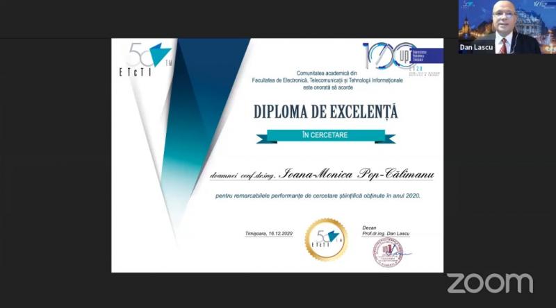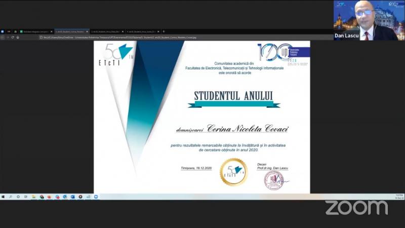 Actuala conducere a Facultății de Electronică, Telecomunicații și Tehnologii Informaționale a ținut să marcheze acest moment, așa cum spunea și decanul acesteia, prof.univ.dr.ing. Dan Lascu, în cuvântul său introductiv, printr-o aniversare în familie, online, la care au participat, în data de 16 decembrie 2020, reprezentanți ai conducerii UPT, cadre didactice, actuale sau pensionate, foști decani, studenți și absolvenți.