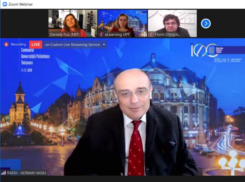 Înmânarea titlului de Profesor Onorific al Universității Politehnica Timișoara a fost oficiată virtual, de către președintele Senatului UPT, prof. dr. ing. Radu Vasiu, în prezența rectorului UPT – conf.dr.ing. Florin Drăgan.